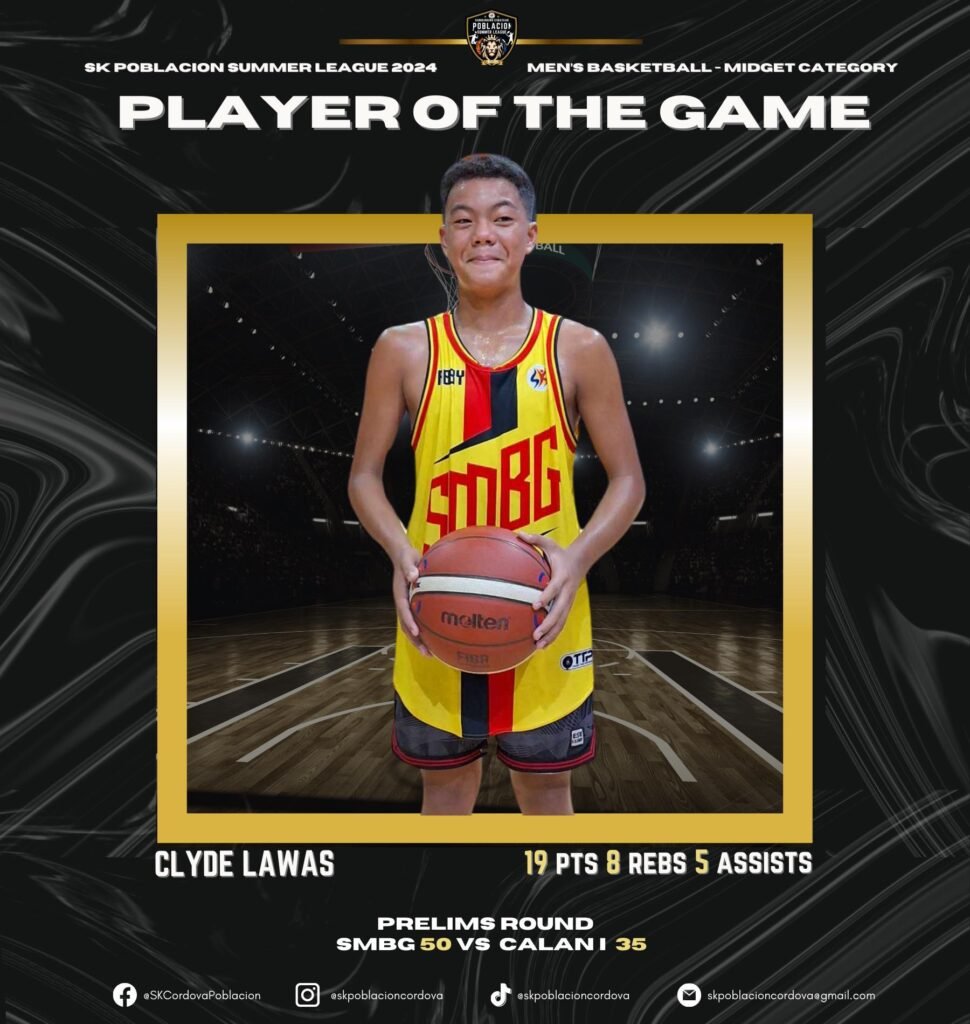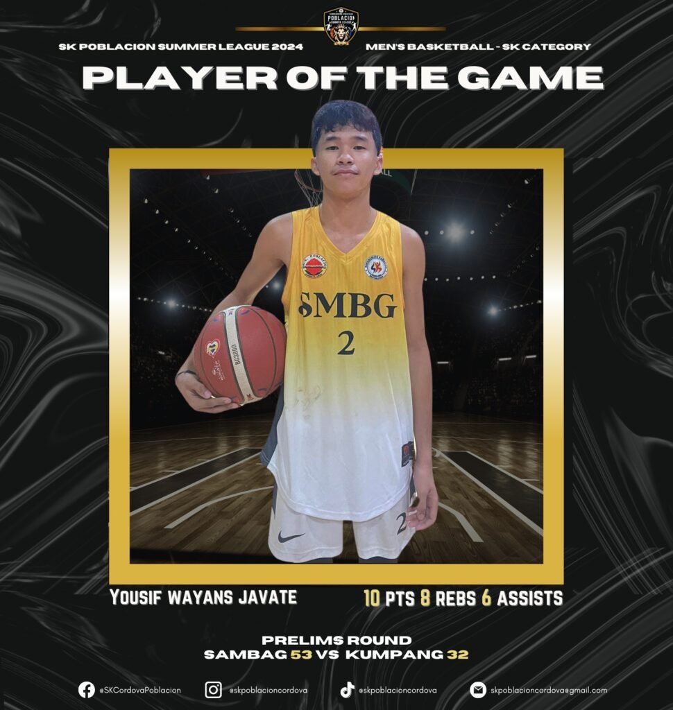 Make sure to follow and like SK Poblacion Cordova’s official Facebook page. Visit the SK Poblacion official Facebook page every night to catch up on our live feed. Let’s continue to support the SK POBLACION SUMMER LEAGUE 2024.