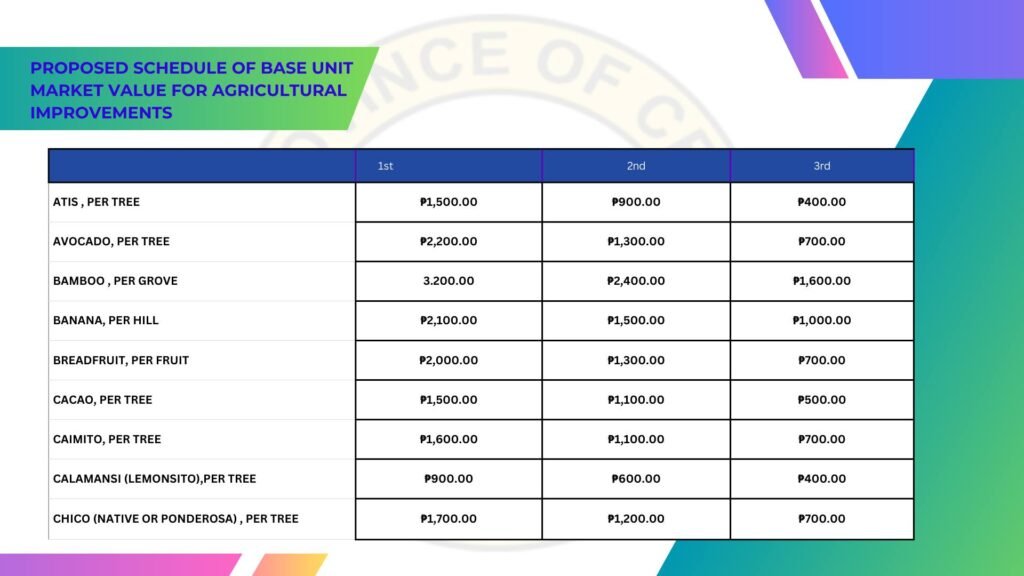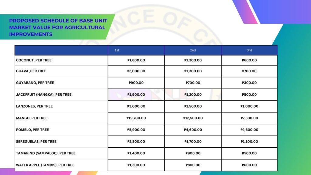In line with the mandate of the Department of Finance (DOF) through the Bureau of Local Government Finance (BLGF), and pursuant to Republic Act No. 12001 (Real Property Valuation and Assessment Reform Act), the Provincial Government of Cebu, via the Office of the Provincial Assessor and in collaboration with all 44 municipal assessors, has prepared the Proposed 2027 Schedule of Market Values (SMV) for real properties in the province.