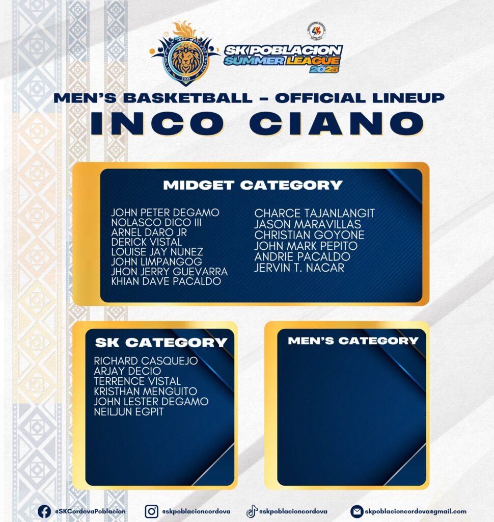 Here are the official list of eligible players from the different puroks, based on their respective categories for the SK Poblacion Summer League 2025.