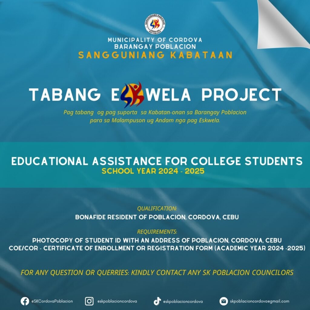 π SK Poblacion Cordova: Educational Assistance for College Students 2024 π