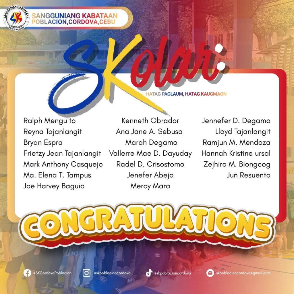 The SK Poblacion Cordova Council proudly establishes โSKolar: Hatag Paglaum, Hatag Kaugmaonโโa program designed to…
